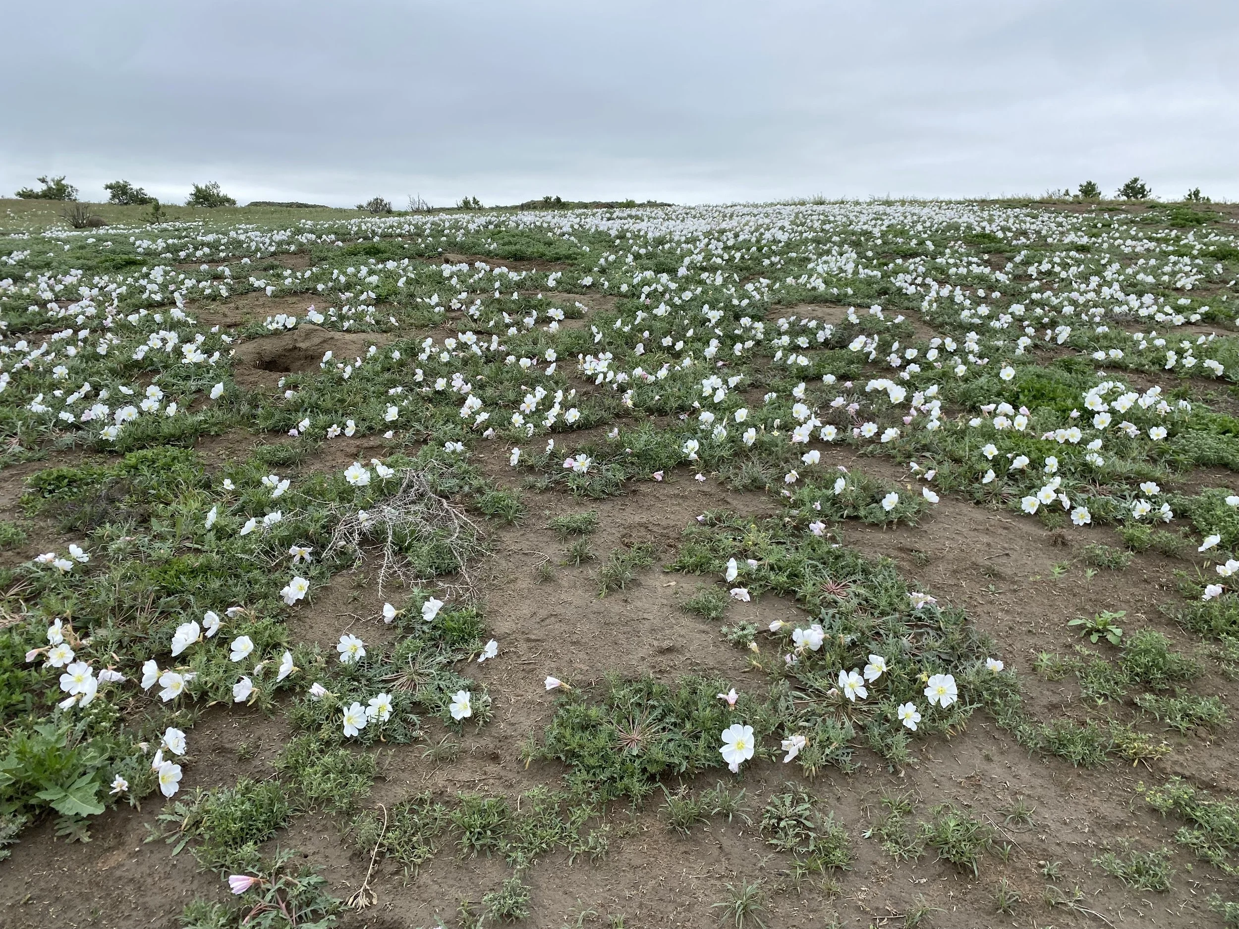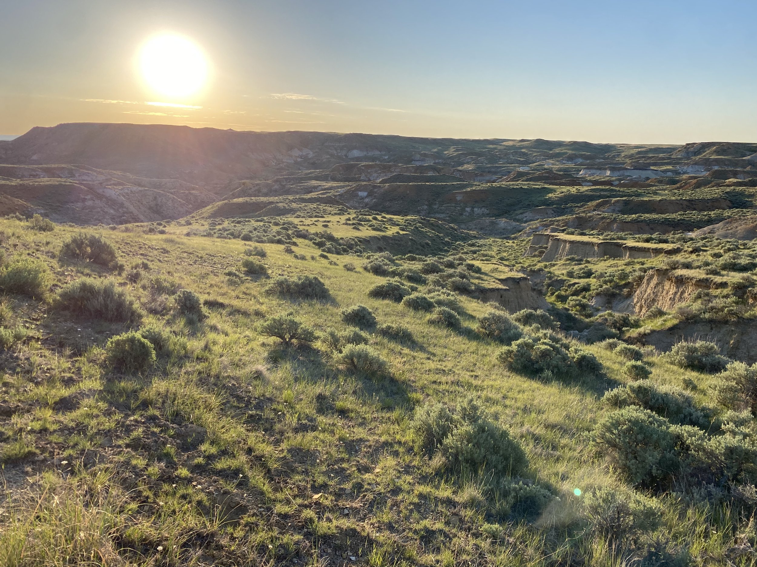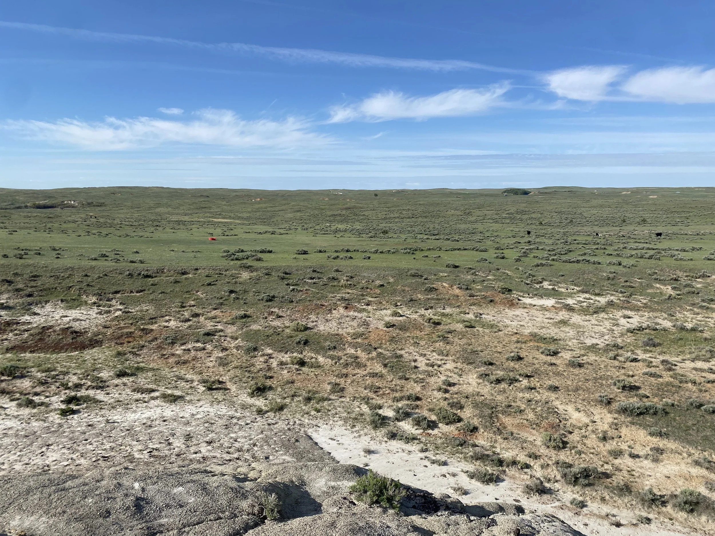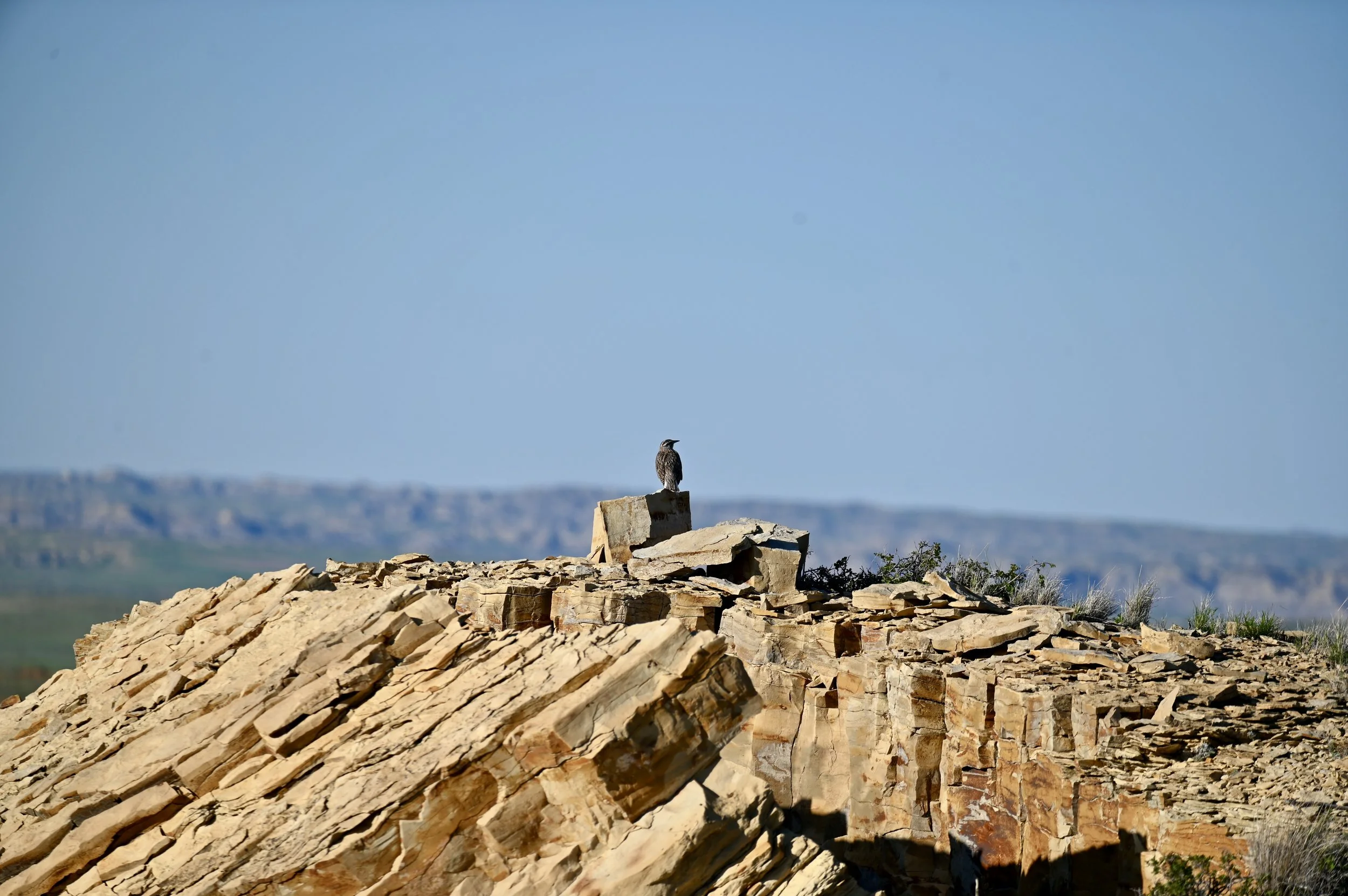 Horned Larks, Vesper Sparrows, Brewer’s Sparrows, Western Meadowlarks, Greater Sage Grouse, snakes, rabbits, coyotes, and Mule Deer live here. Ants rule.