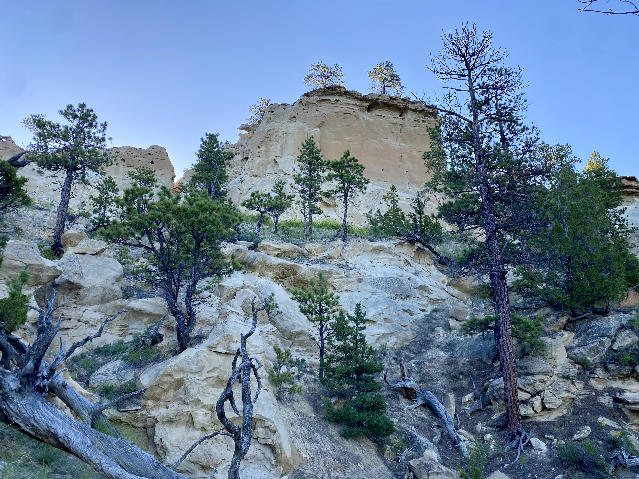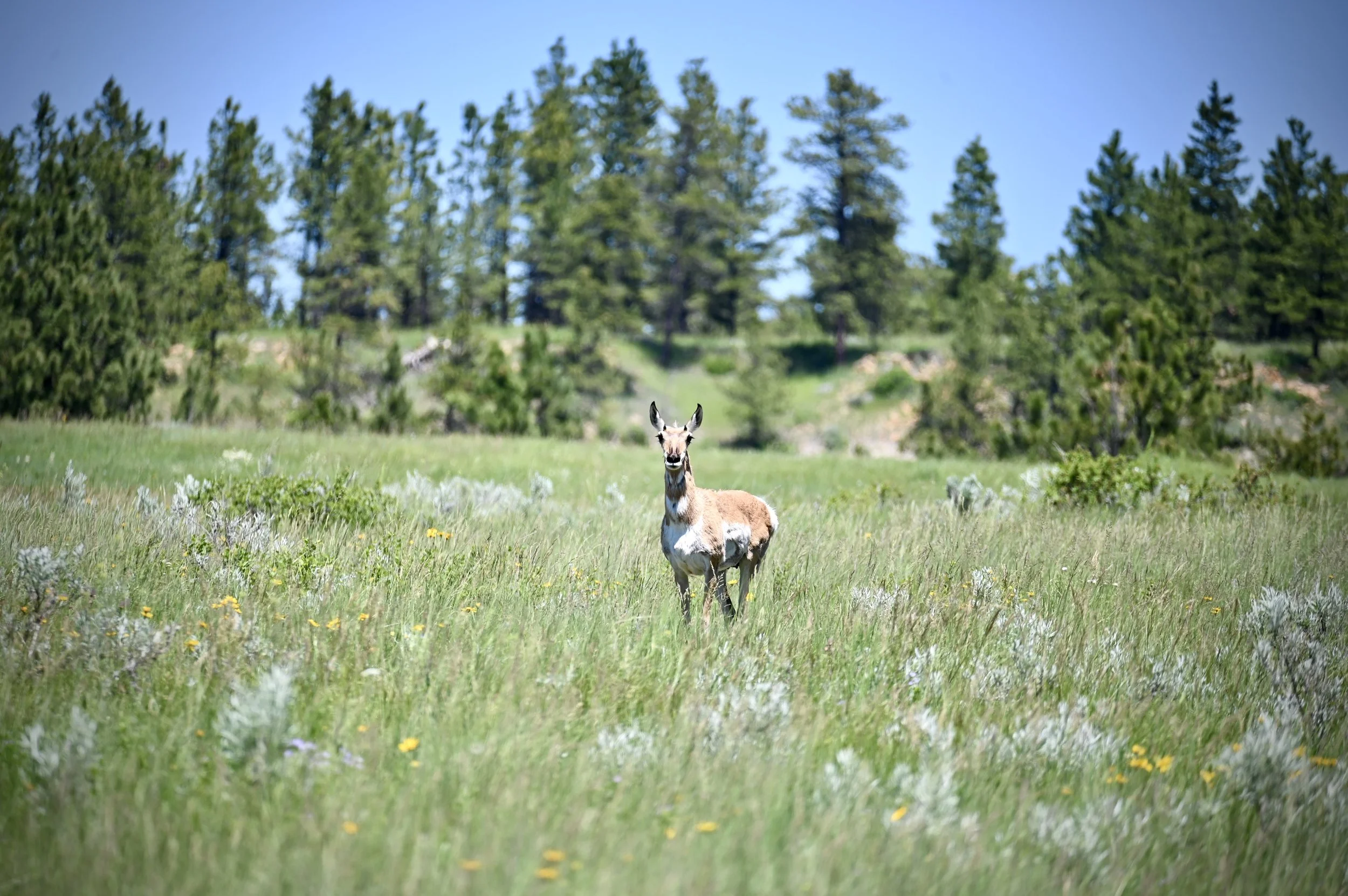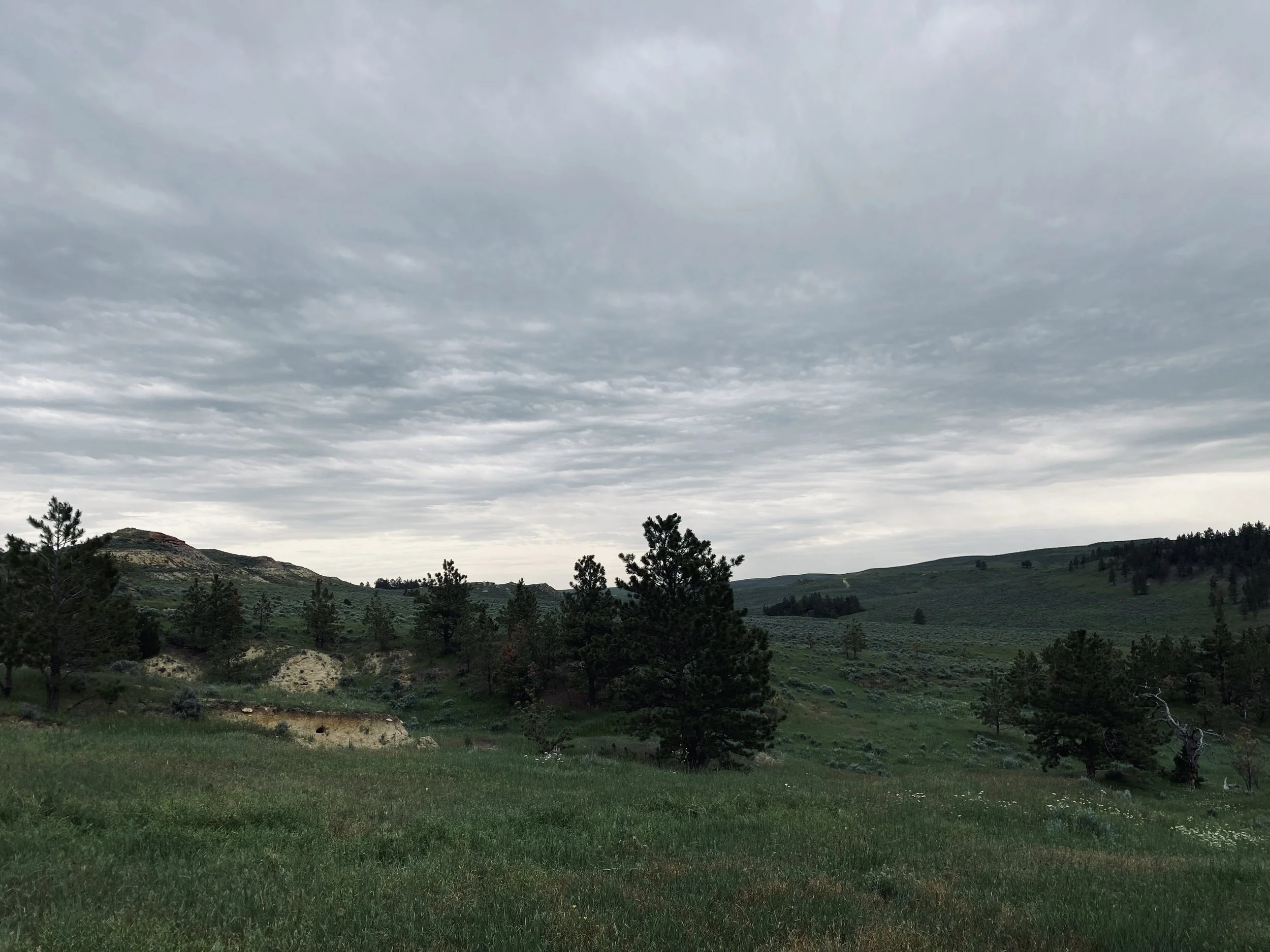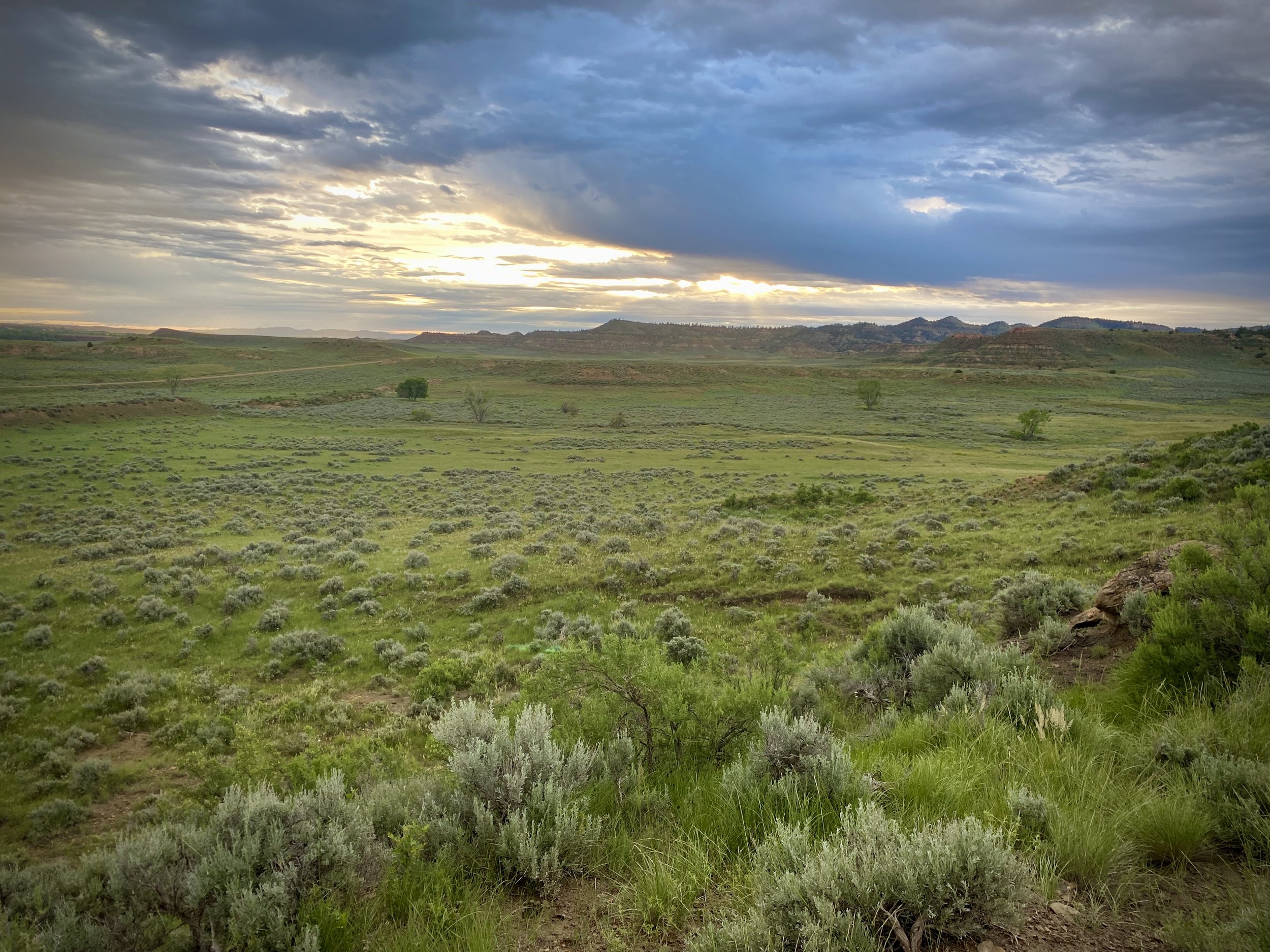 Horned Larks, Vesper Sparrows, Brewer’s Sparrows, Western Meadowlarks, Greater Sage Grouse, snakes, rabbits, coyotes, and Mule Deer live here. Ants rule.