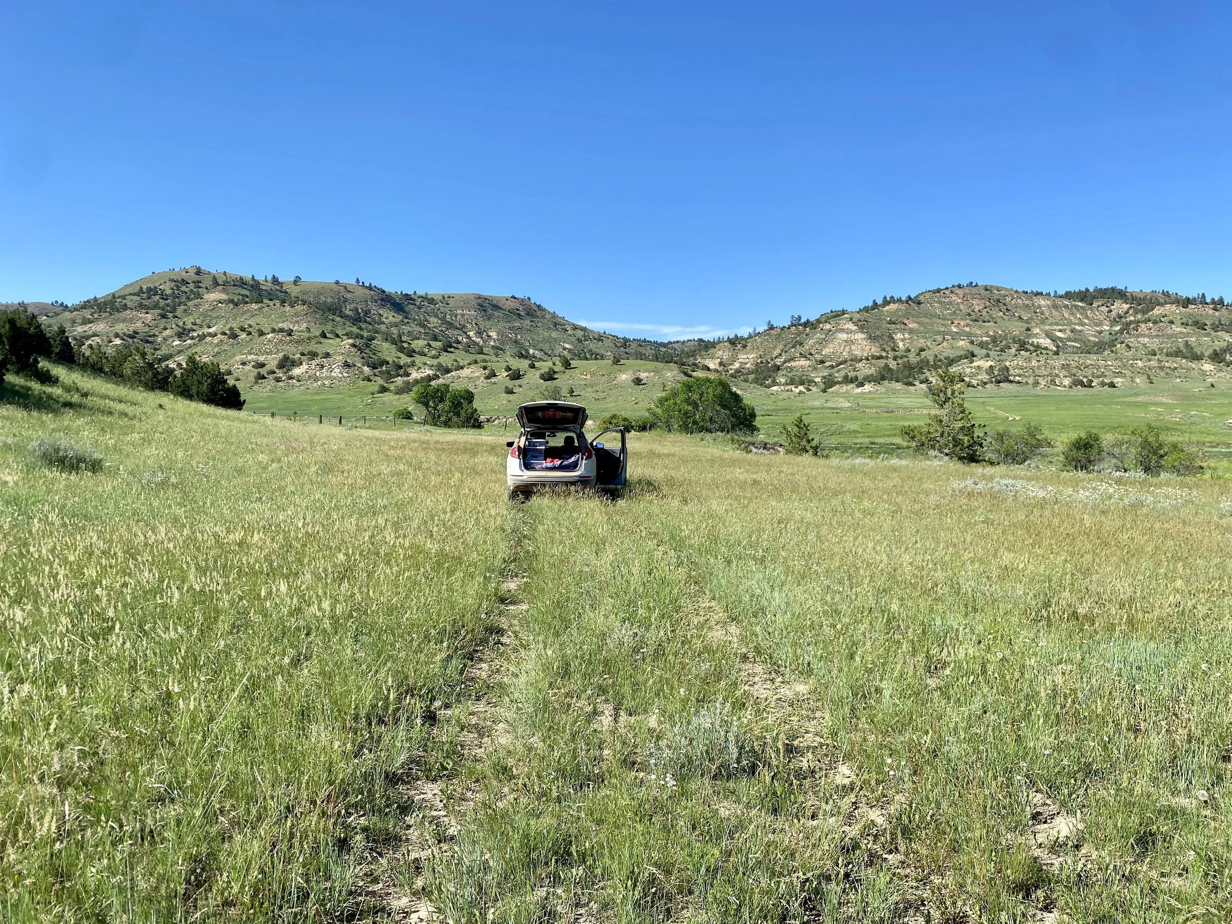 Drove 5 hours from the Custer to north of Forsyth: 1 hour on a 2-track, 1 hour on a dirt road, 1 hour on the highway, 1 hour on a dirt road, 1 hour on a 2-track.
